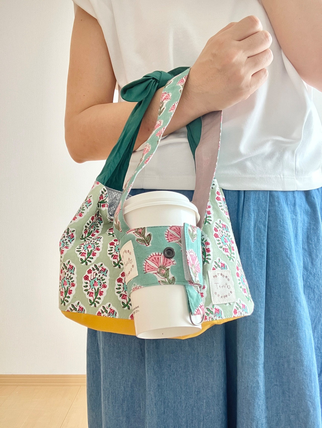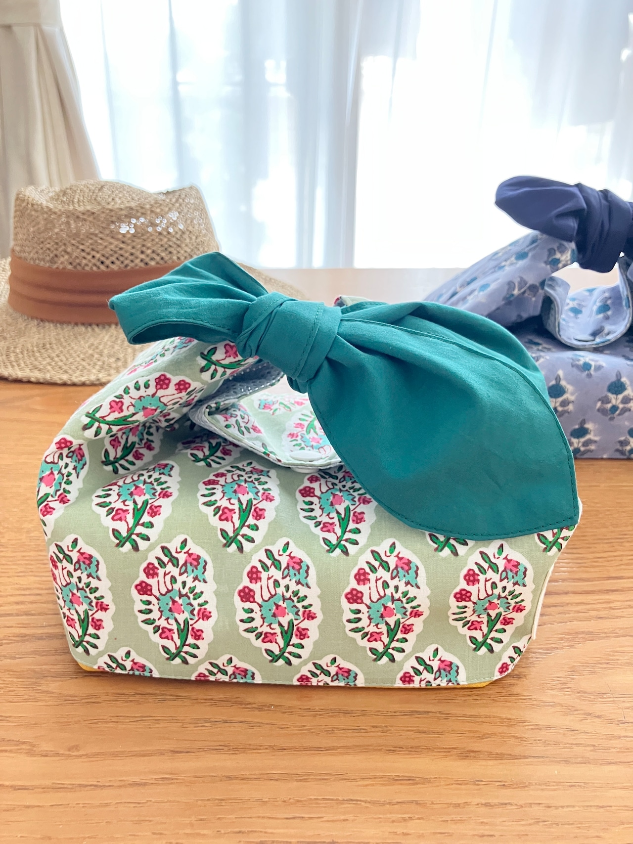 限定3点【 グリーン 】ランチバッグ/ブロックプリント