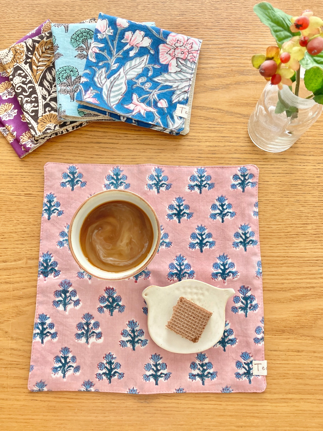 ・ブロックプリントは一つ一つ手作業で作るインドの伝統工芸です。そのためズレやにじみがある場合がございますが、自然な風合いとしてお楽しみください。