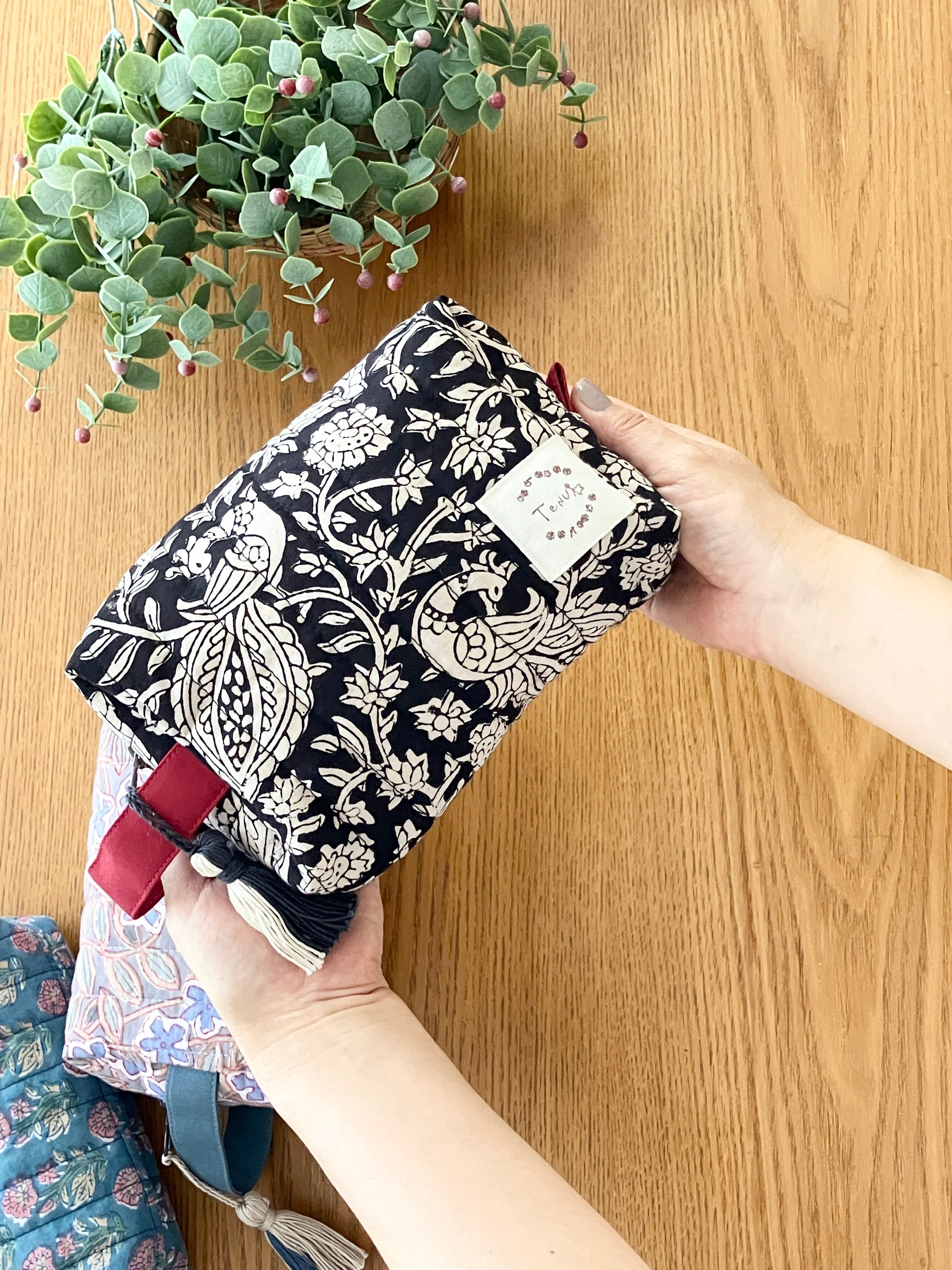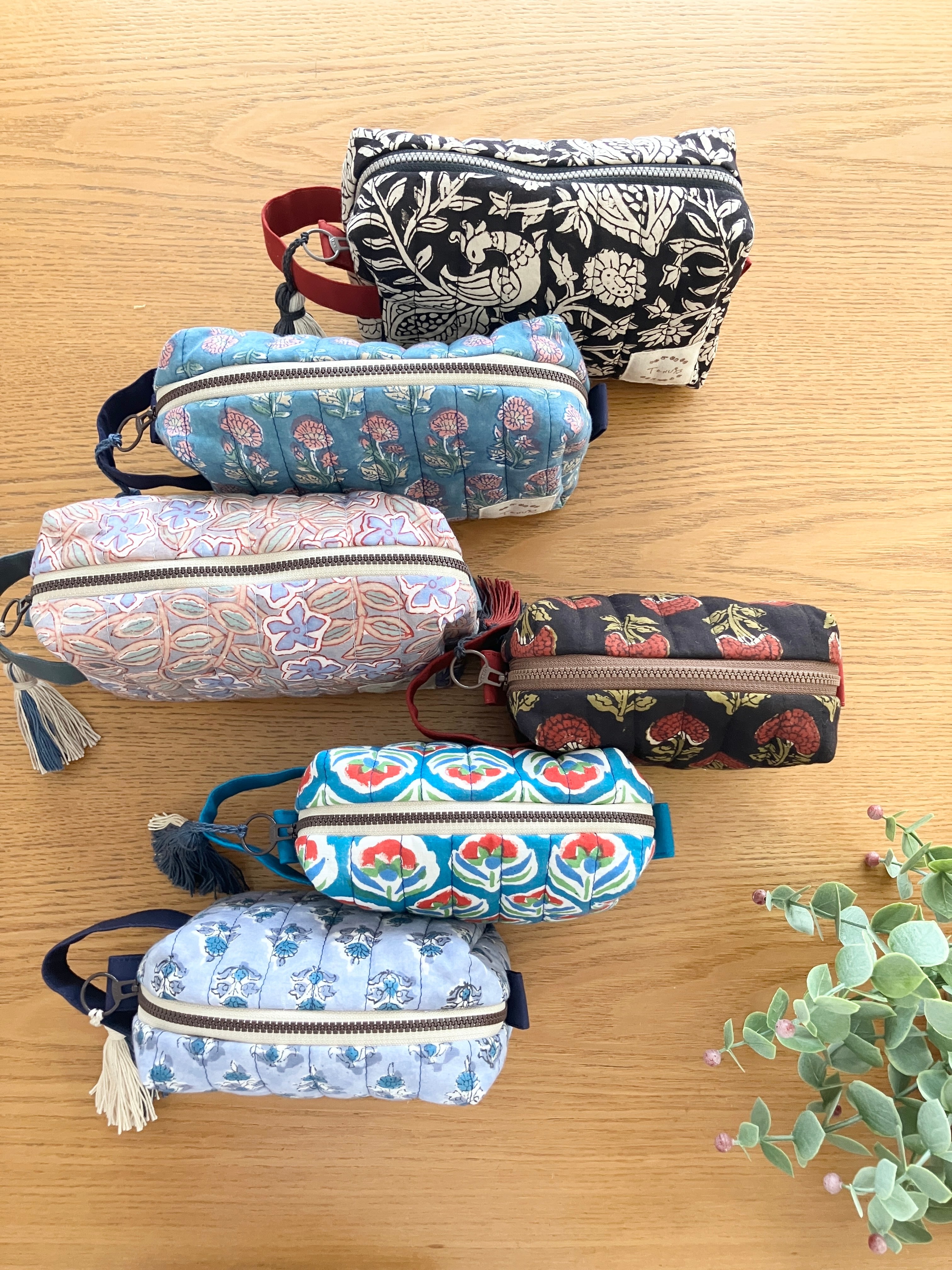 【 大C 】旅のキルティングポーチ/ブロックプリント