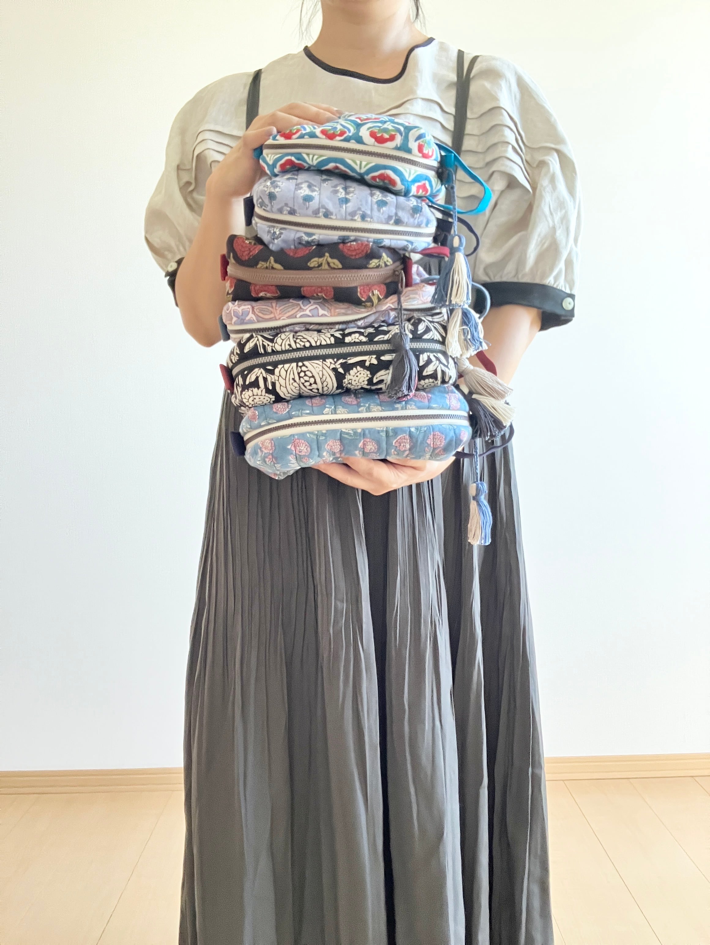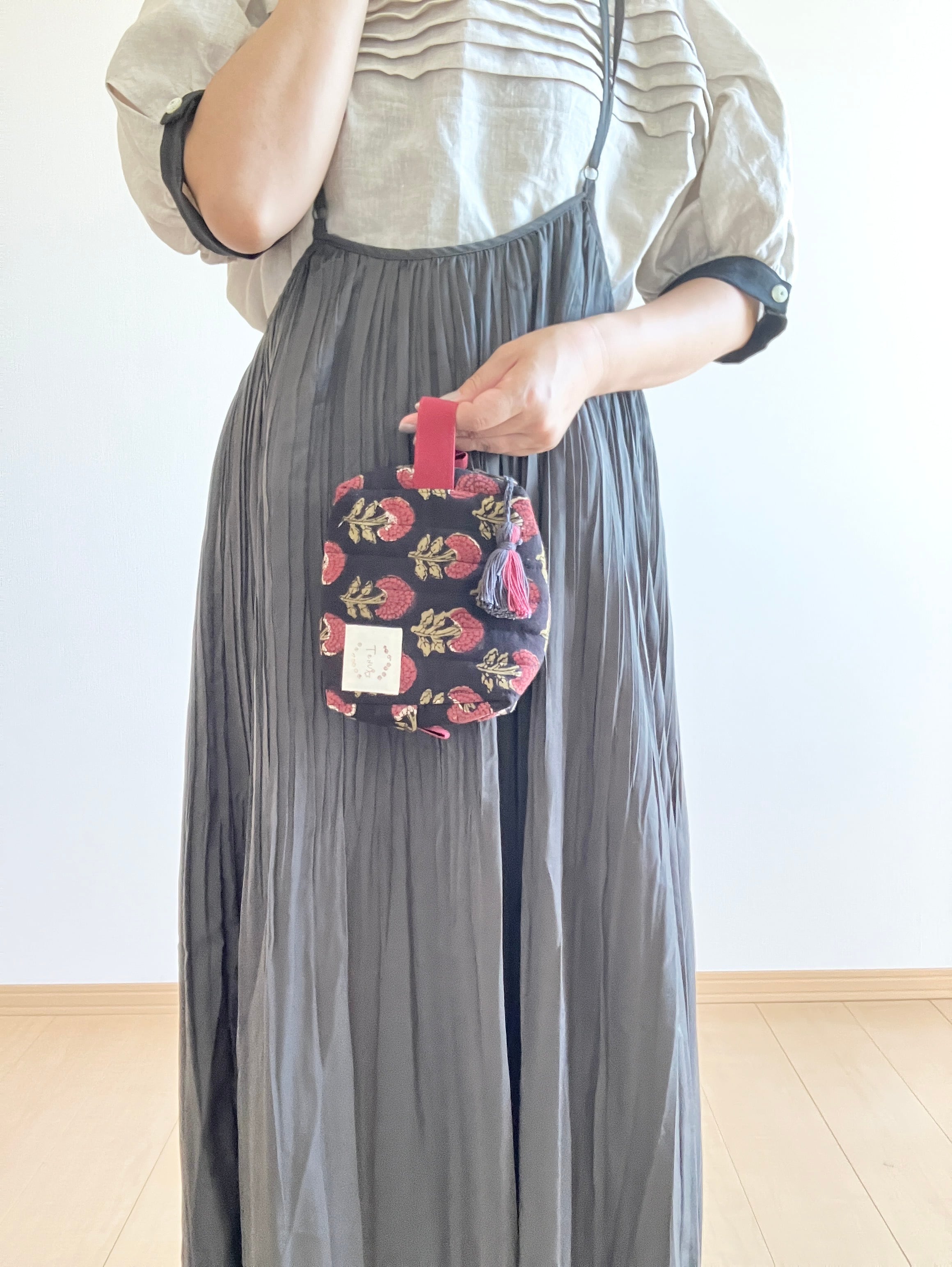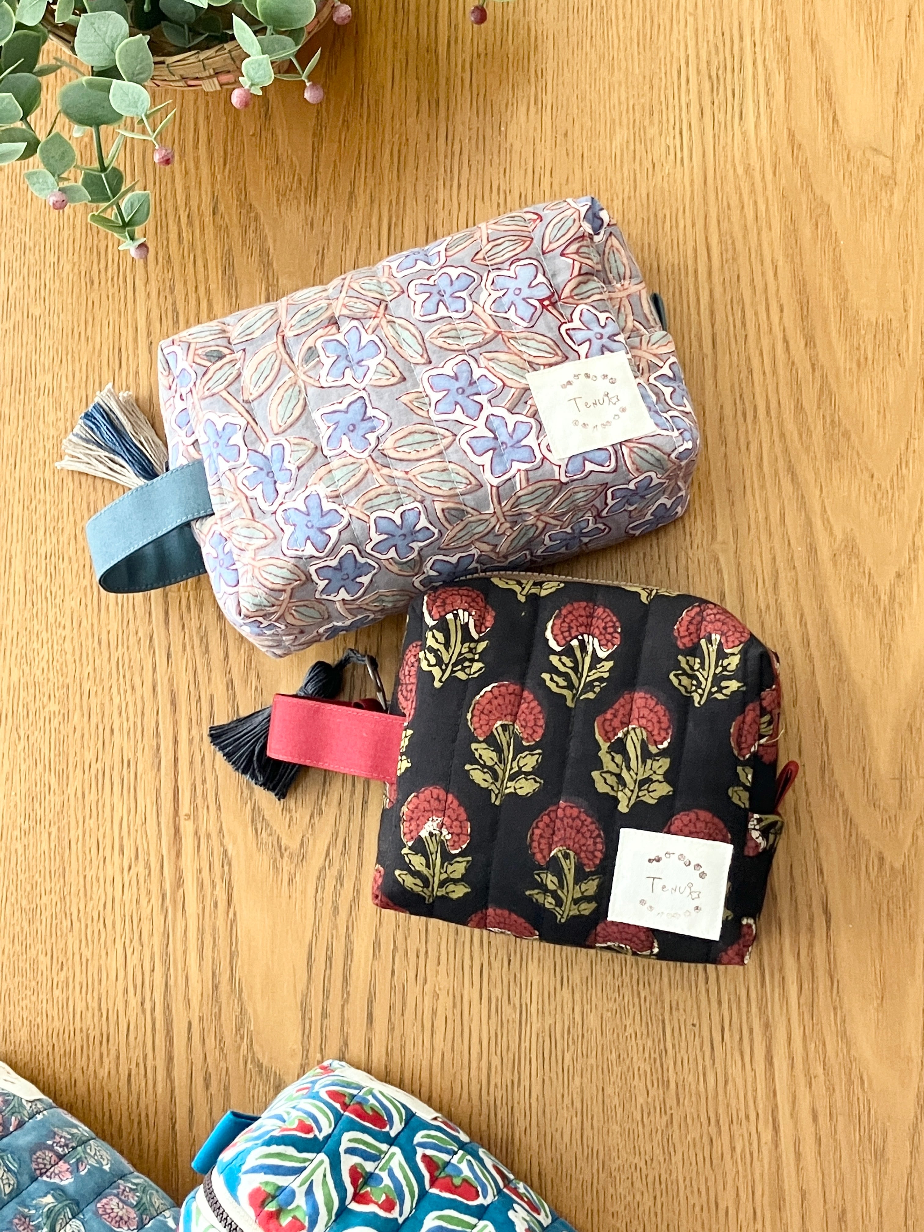 【 小A 】旅のキルティングポーチ/ブロックプリント