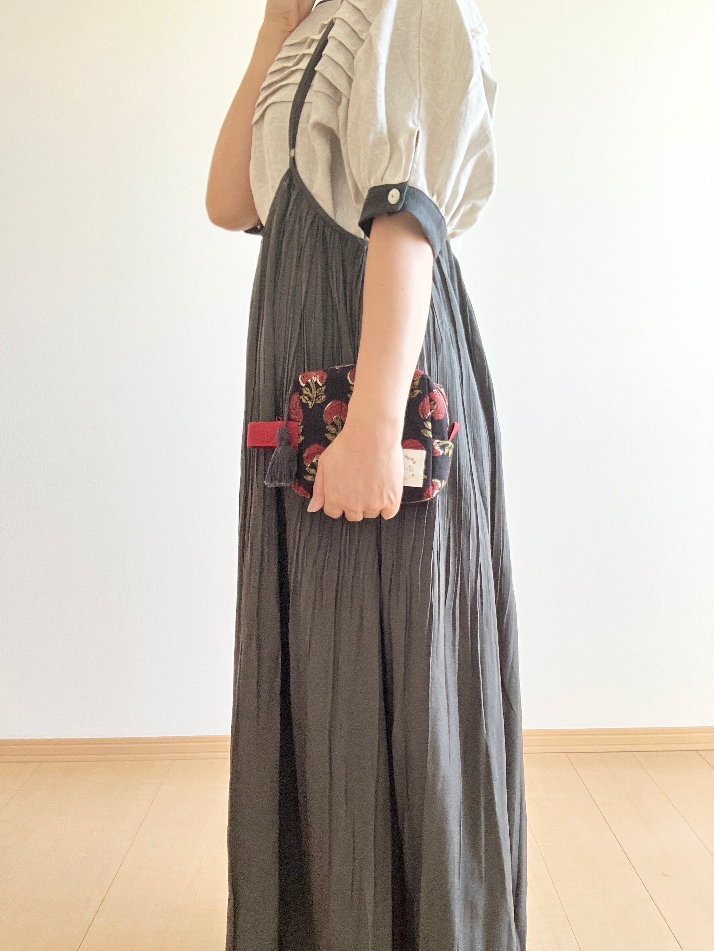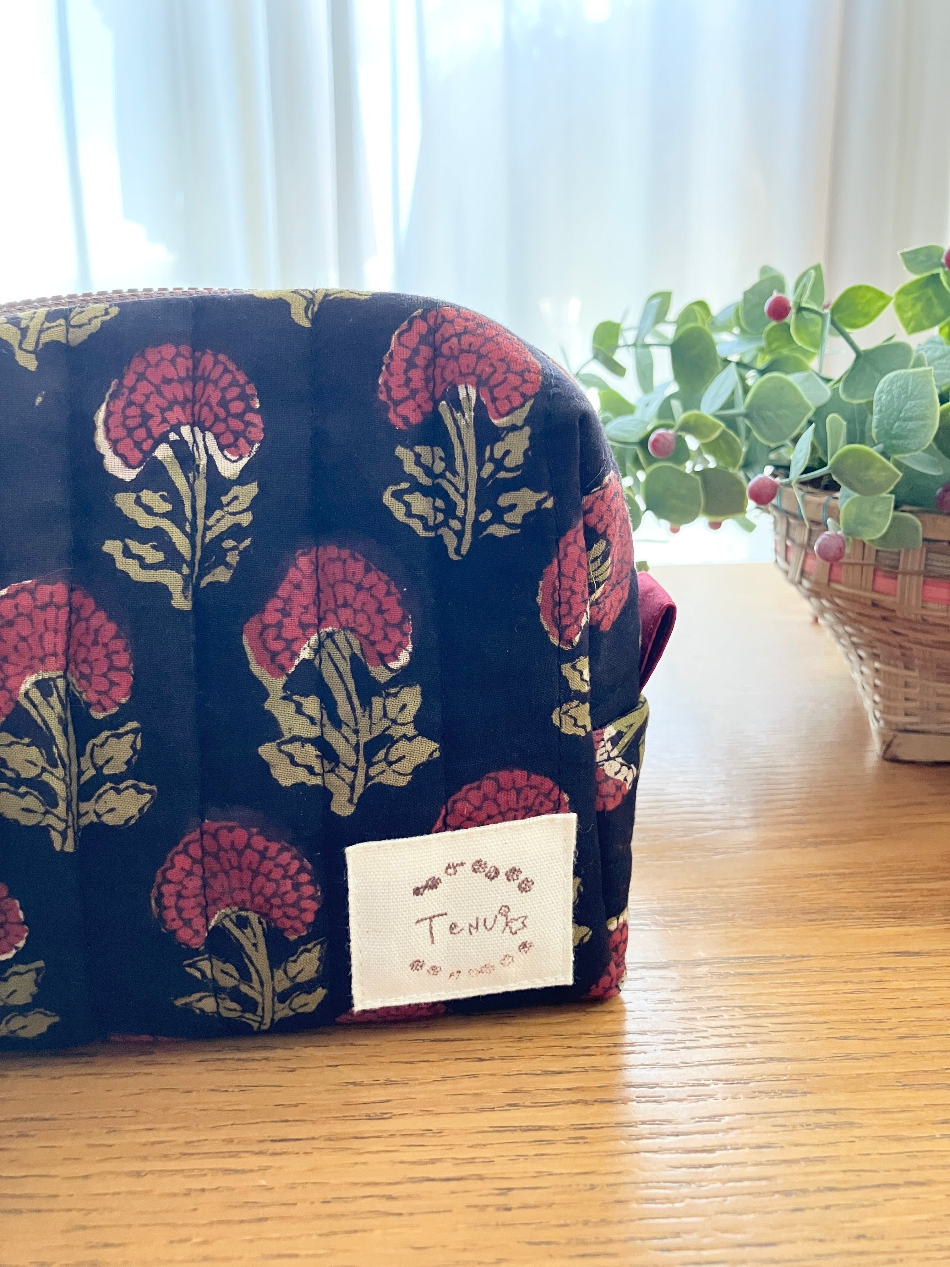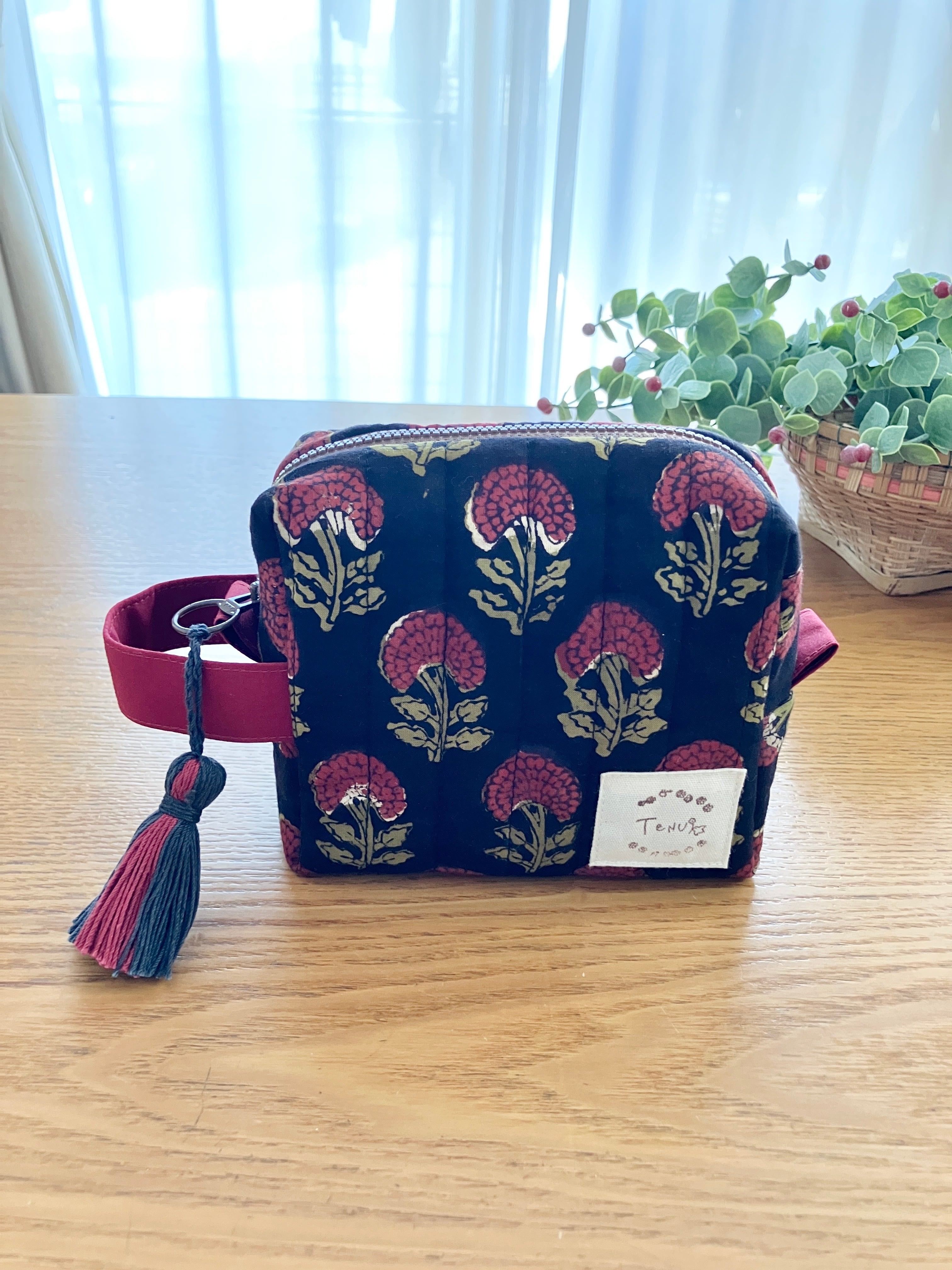 【 小A 】旅のキルティングポーチ/ブロックプリント