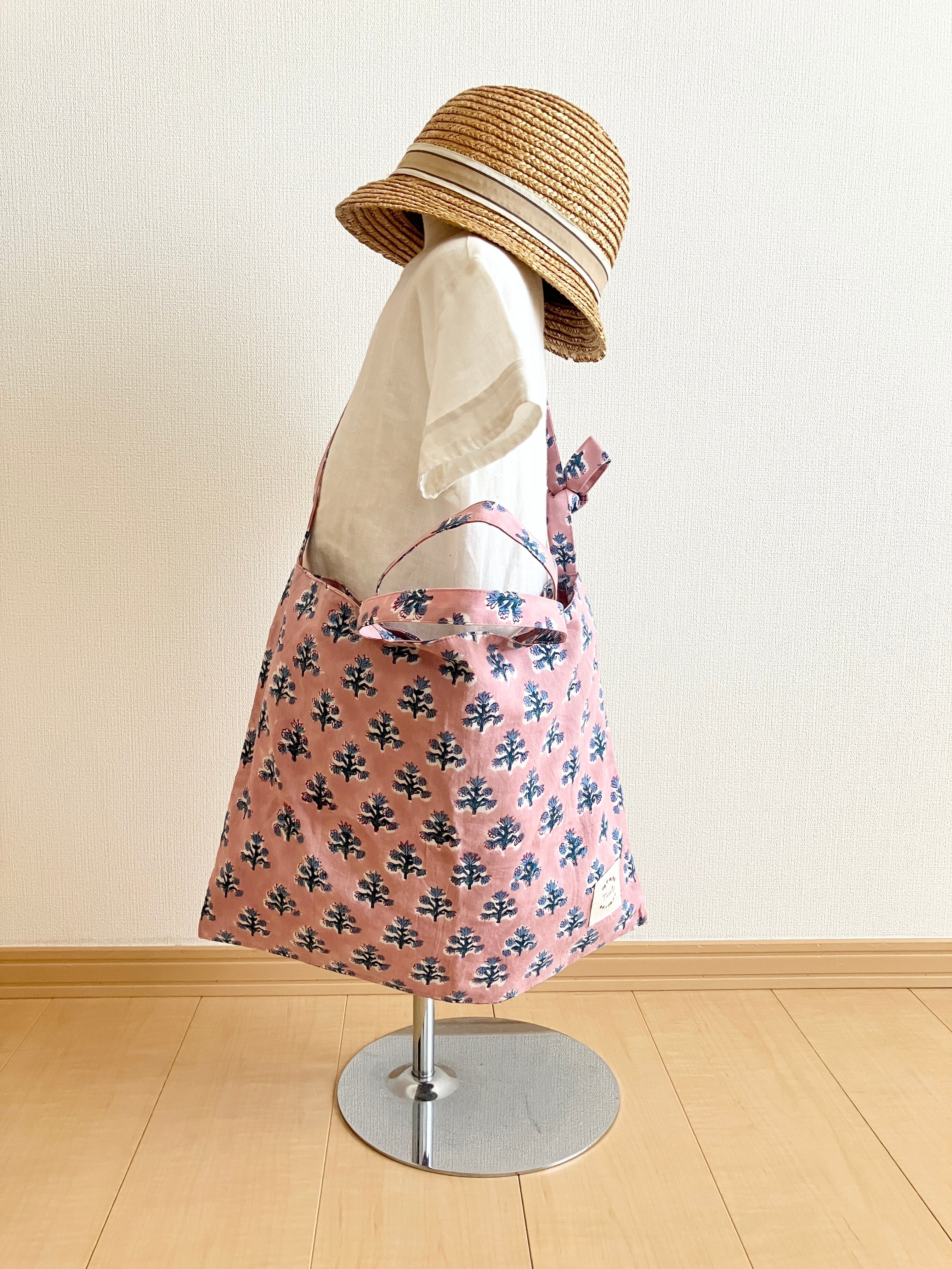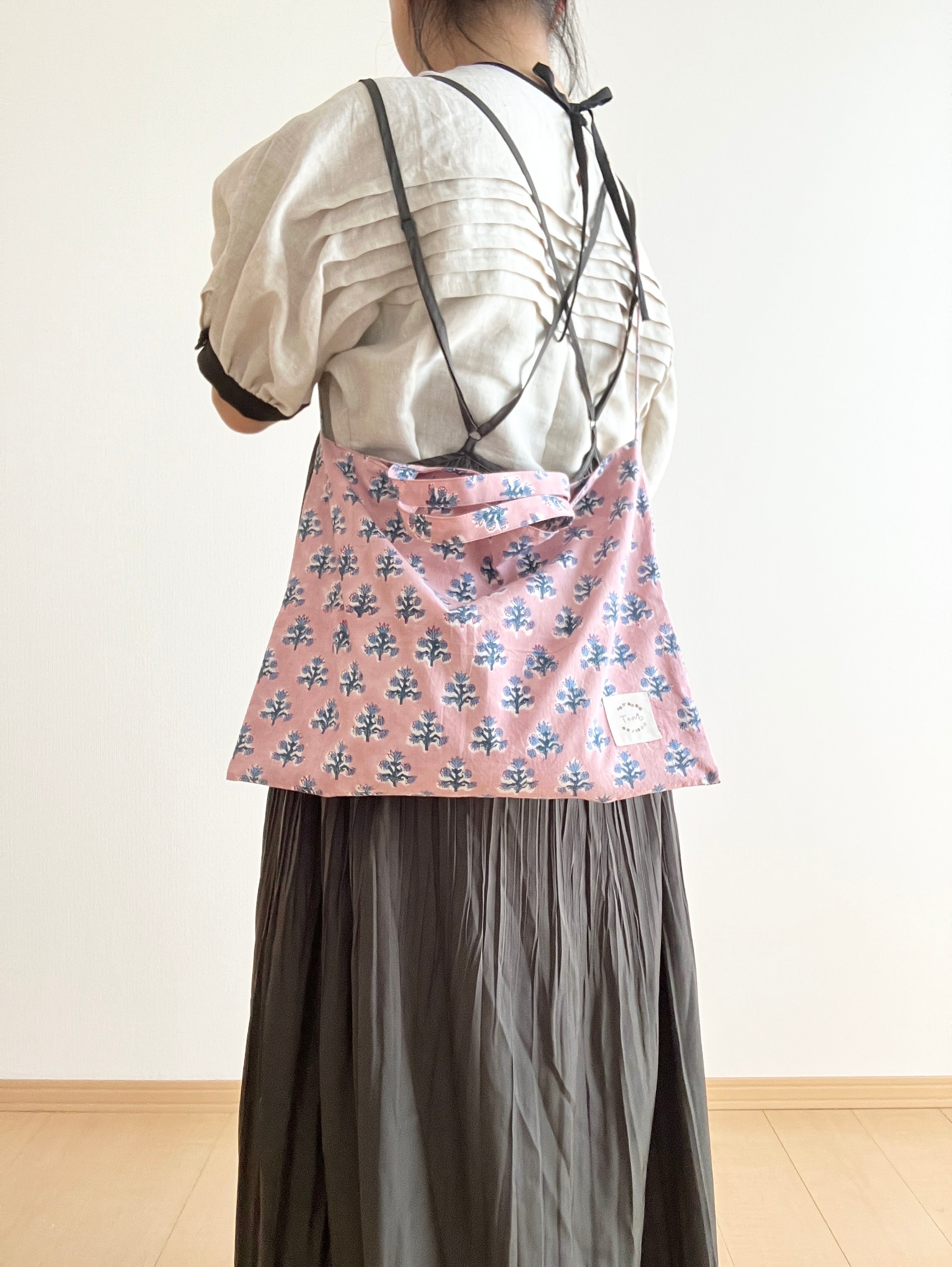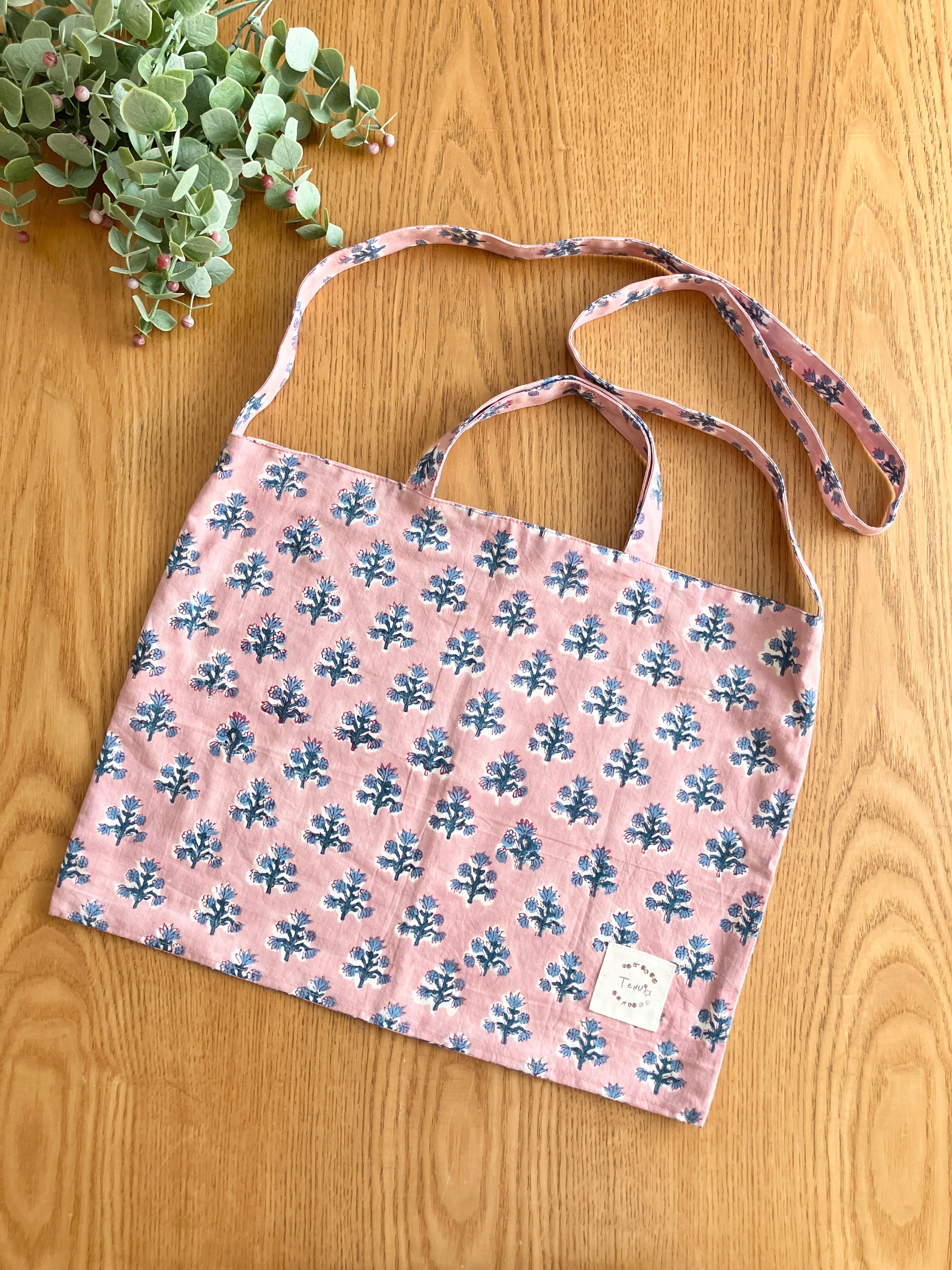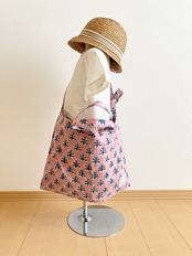 【 PINK 】おさんぽバッグ/ブロックプリント
