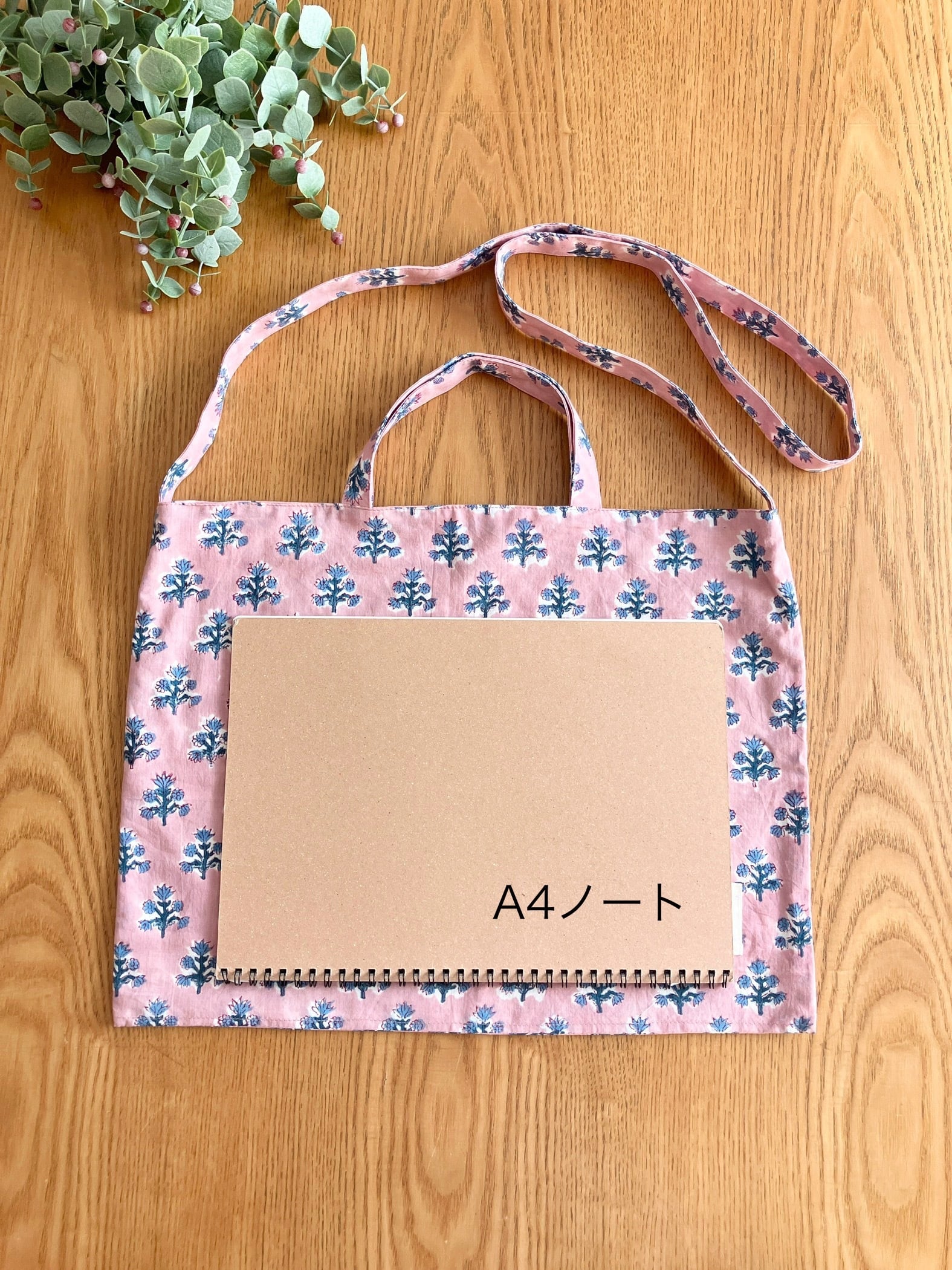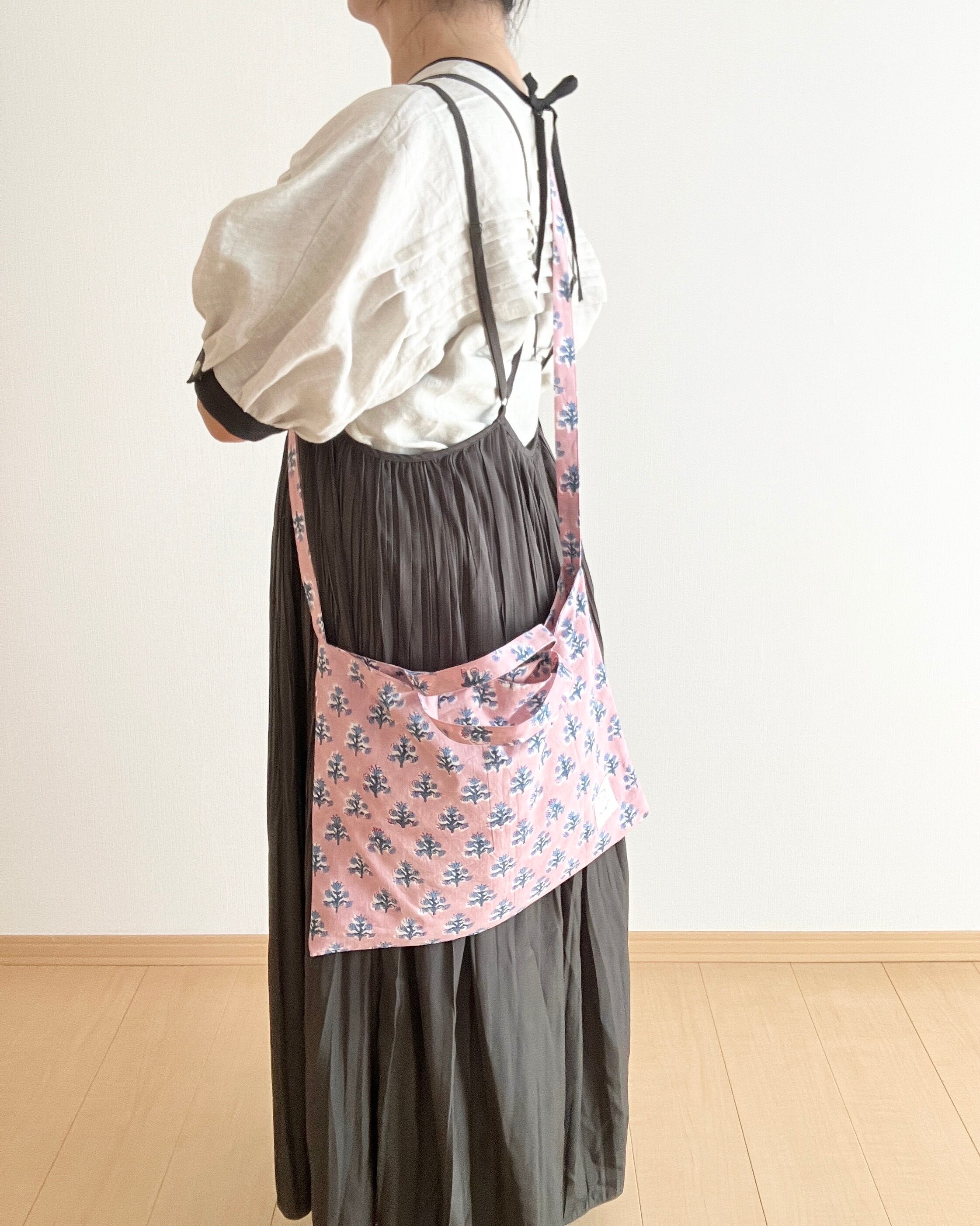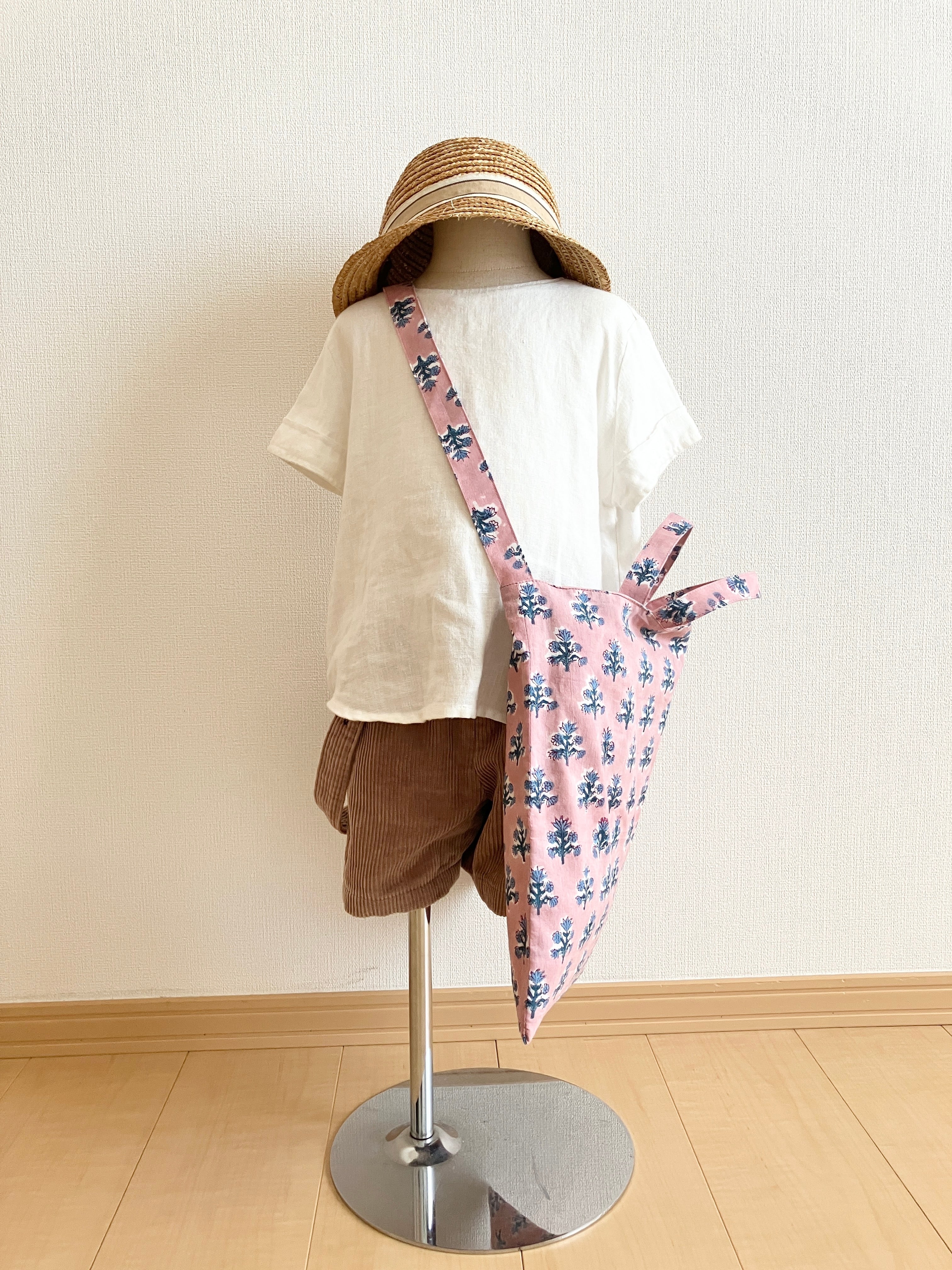 【 PINK 】おさんぽバッグ/ブロックプリント