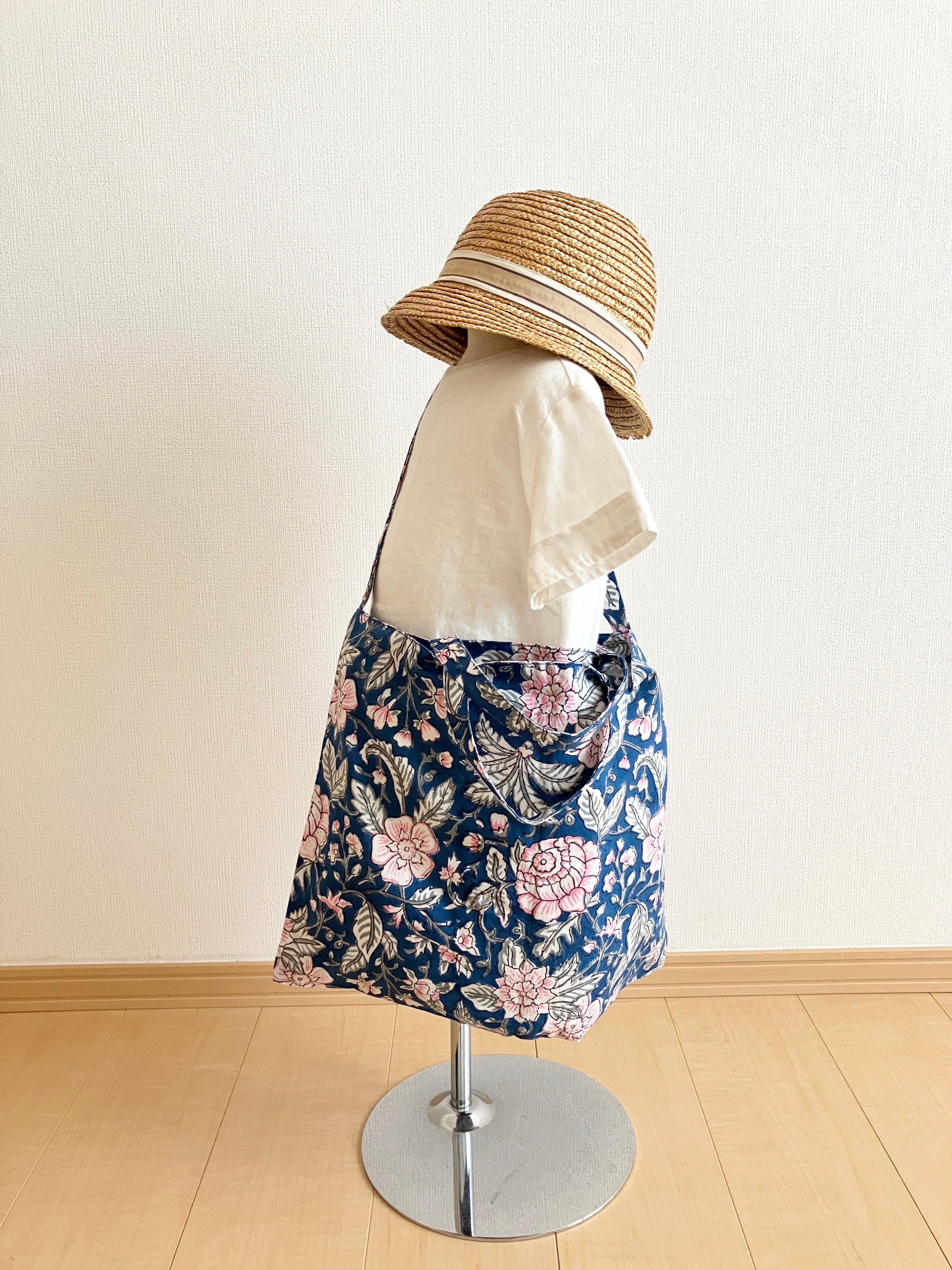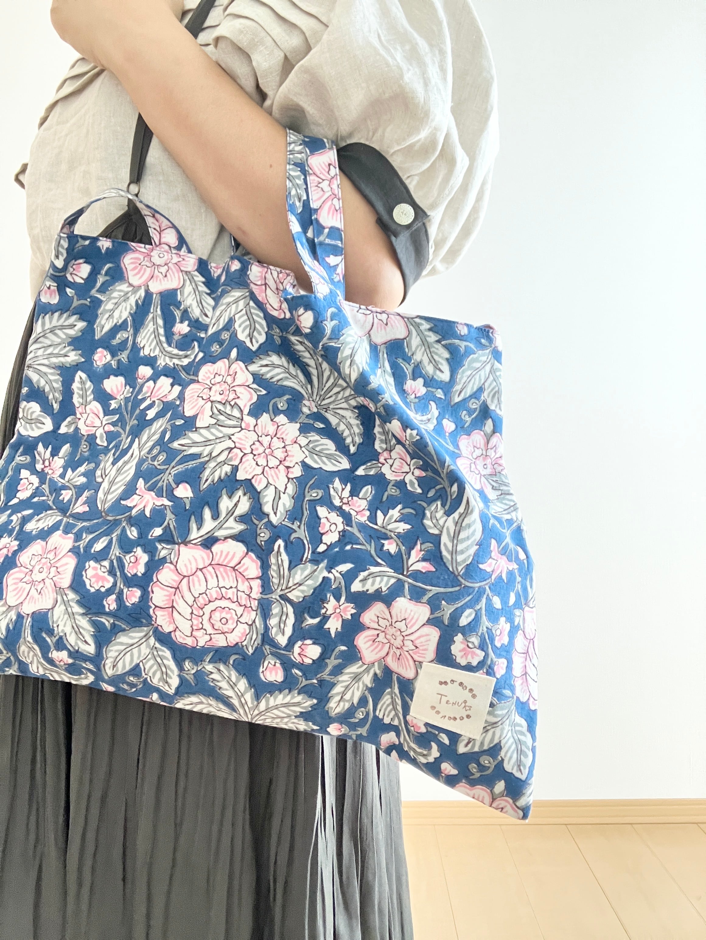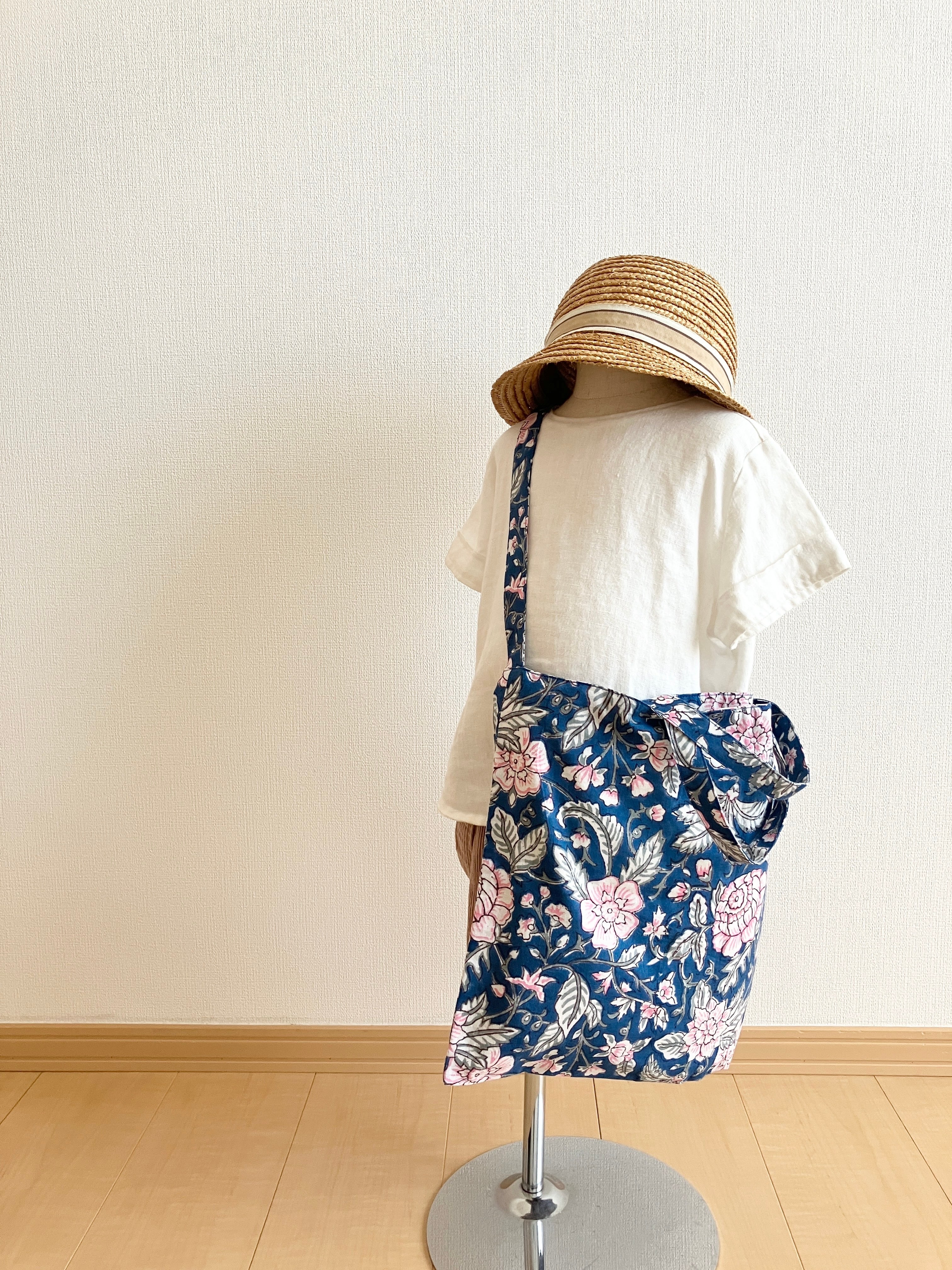【 BLUE 】おさんぽバッグ/ブロックプリント