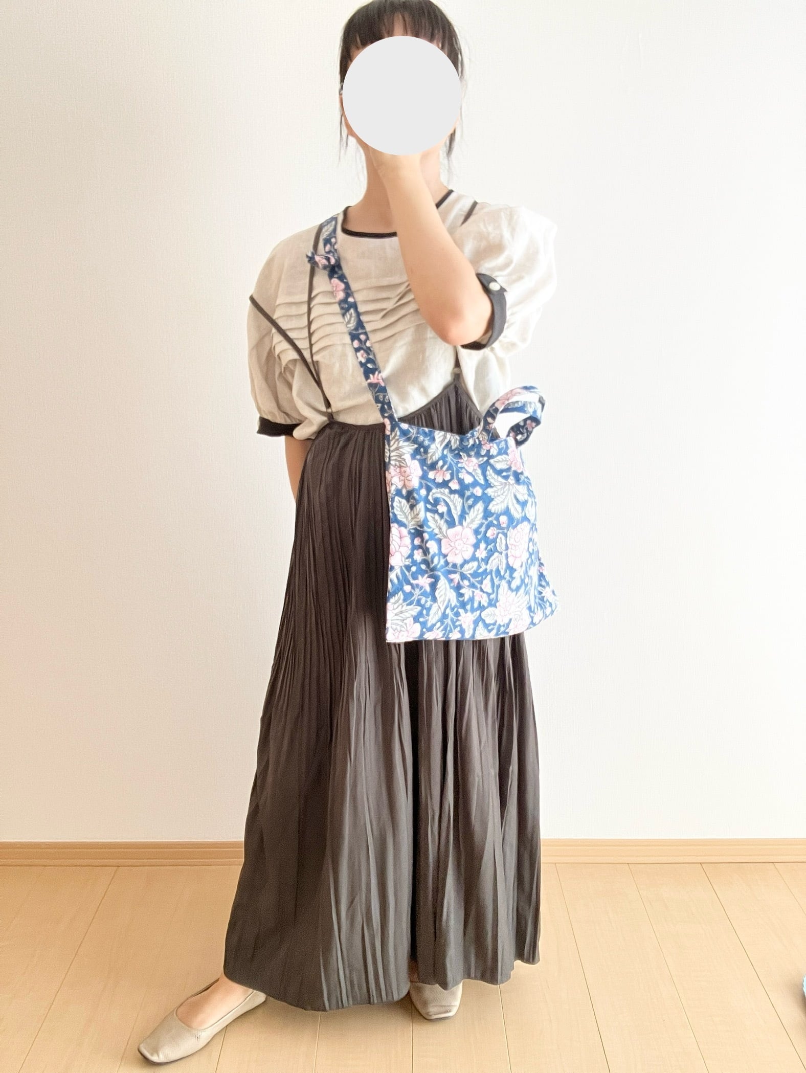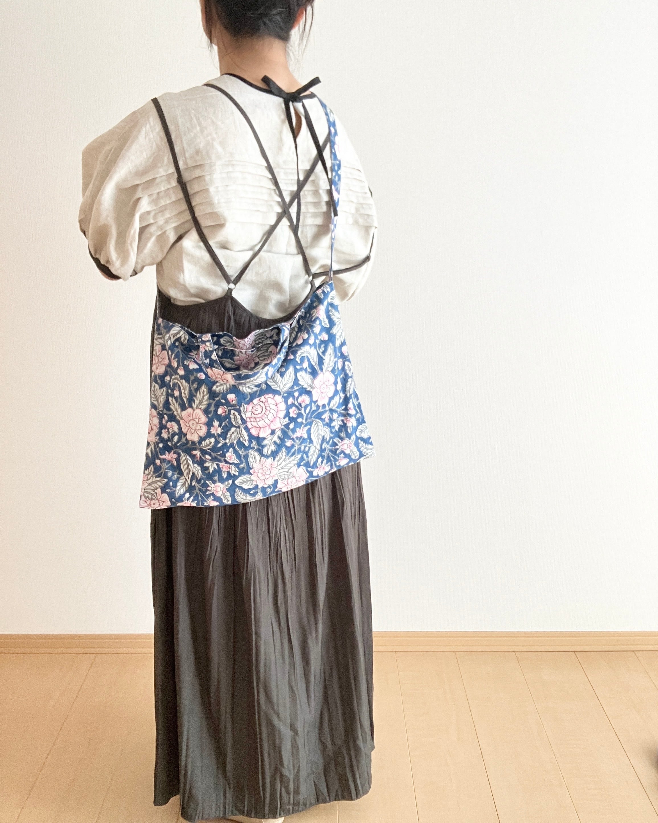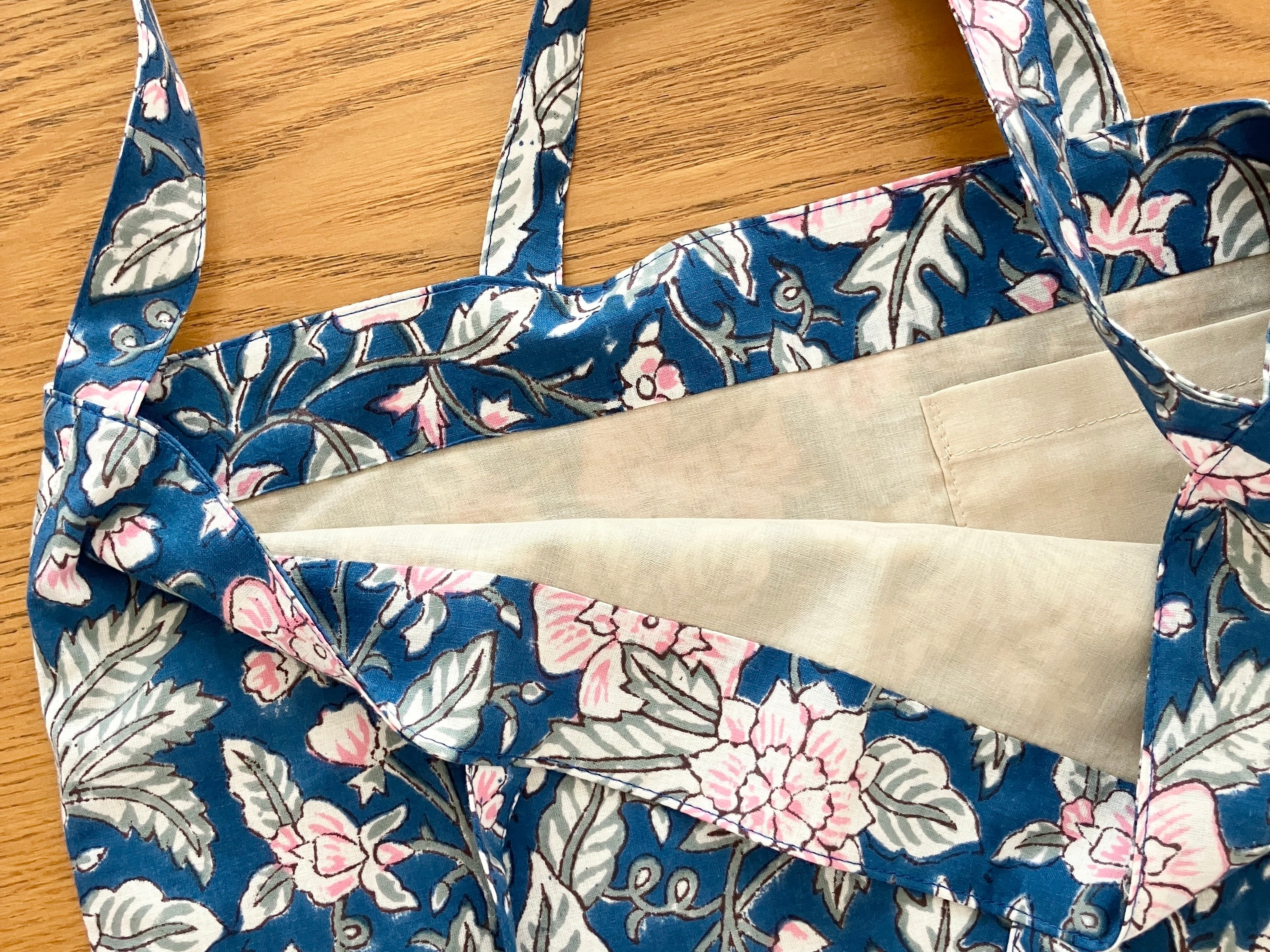【 BLUE 】おさんぽバッグ/ブロックプリント